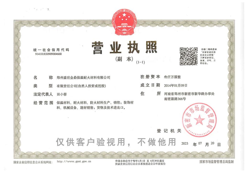 鄭州盛世金鼎保溫耐火材料有限公司,始建于1982年,是一家集生產、銷售、施工于一體的綜合性公司,是中國電力部,冶金行業、水泥行業、國家石油和化學工業絕熱材料、保溫材料的推薦供應單位,是中國建筑材料科學研究院和天津化工研究院的實驗基地。本公司實行質量承諾制度,產品經國家耐火材料質量監督檢驗測試,產品質量達到并超過了GB/T10699—1998國家標準,通過了ISO9001:2000國際質量體系...